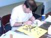We were busy painting and mounting figures until the last minute. Here is Richard at work in his basement. |