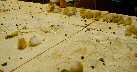 The Russian response was to set up a defensive line with their infantry in the woods just outside 2" from the Germans, and their tanks just under 5" from the woods edge. Any German moving up would be subject to multiple ambush fires. |