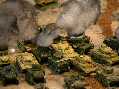 The armored cars charge forward and encounter T34s at close range. The guns on the T34s dispatch two of the ACs and the battle is essentially over. |