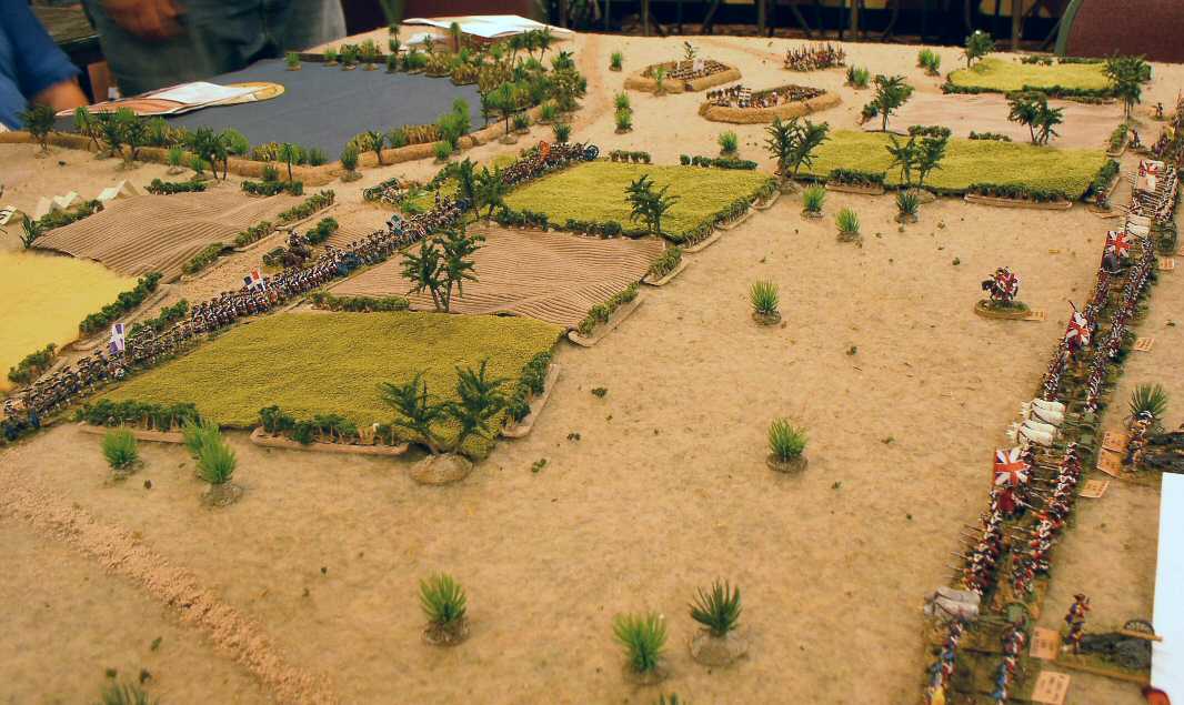 A view of the start of the battle, showing the successive Union positions and the massed Confederates. |